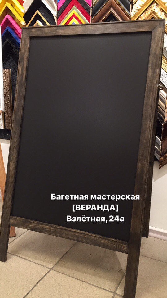 Мы всегда держим наличии самые популярные размеры меловых досок и штендеров. Приезжайте к нам в мастерскую и заберите то, что подходит вам больше всего.